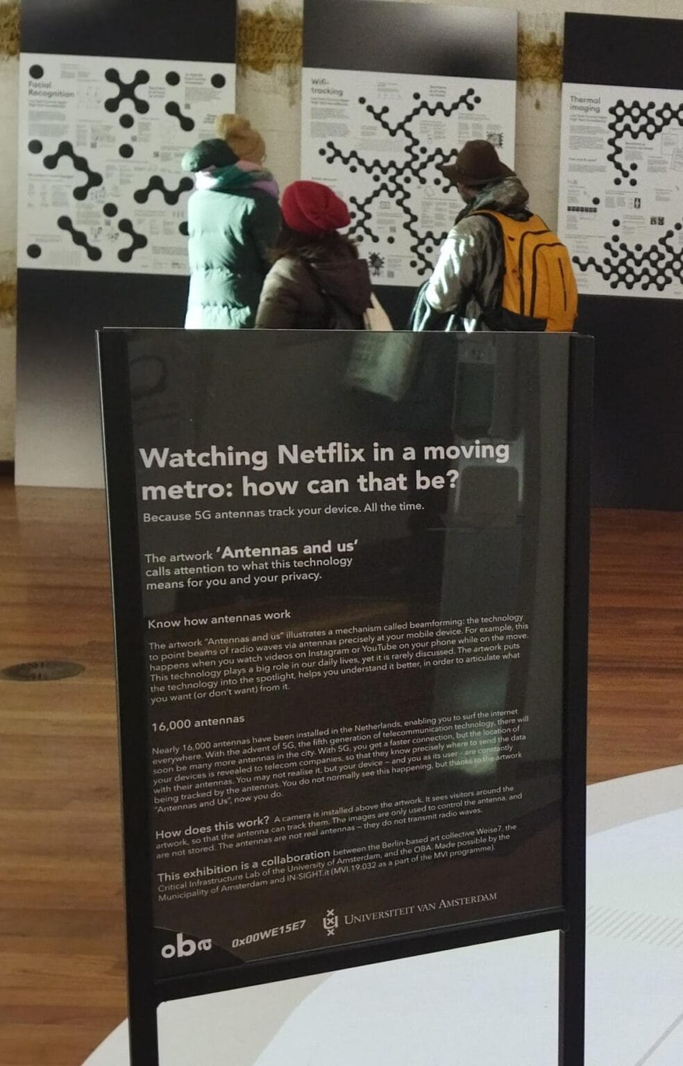 Together with Berlin-based art collective weise7 we organized an exhibit called ‘antennas and us’ in the Amsterdam public library to show the invisible workings of telecommunications networks, and beam-forming in particular. the exhibition ran from November 2022 until march 2023.